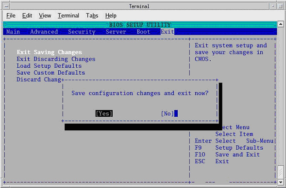 Highlight [Yes], and press Enter, to “Save configuration changes and exit now.”