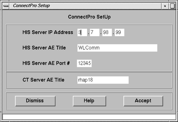10. Enter the HIS information you recorded into the corresponding data fields on the ConnectPRO Setup screen.