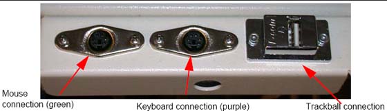 Figure 4. Global Console Front Bulkhead, showing mouse, keyboard, barcode reader and trackball connections