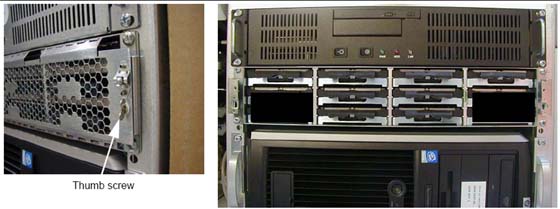 Using the thumb screws, remove the front cover. Use caution so you do not damage the tabs on the top edge or the small plates on the bottom edge.