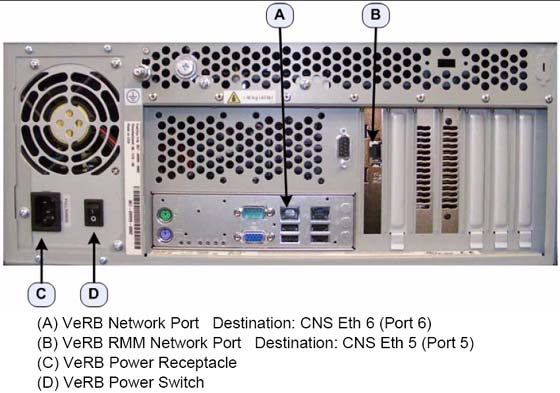 On the backside of the console, plug the other VeRB computer network cable (p/n 5313765) into the VeRB RMM network port (B). See Figure 18. Place "VeRB RMM Eth 5" label on this end of the network cable.