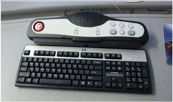 Figure 7. SCIM connected to the keyboard with the US English tilt overlay installed (actual components may vary in color and style)