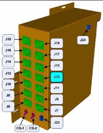 Plug the newly labeled end of the power cord into the J13 on the Power Distribution Box. See Figure 20.