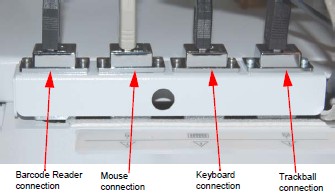 Figure 4. Global Console Front Bulkhead, showing mouse, keyboard, barcode reader and trackball connections