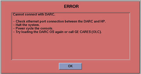 This section describes pop-up message boxes that may appear during a DARC OS load and provides additional information on what to do if you get one.