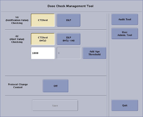 Figure 1. Dose Check Management User Interface (Default Configuration Shown)
