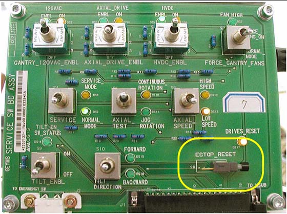 Figure 8. Reset Buttons on Gantry and Service Switch Bank
