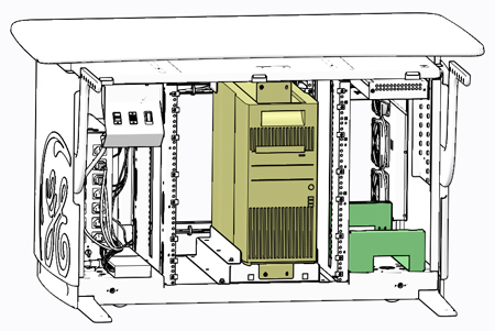 Only the Console Computer, classified as Field Replaceable Unit (FRU), needs special attention due to its associated weight. The following illustration shows this computer’s location in the center of the GOC6.6 chassis.