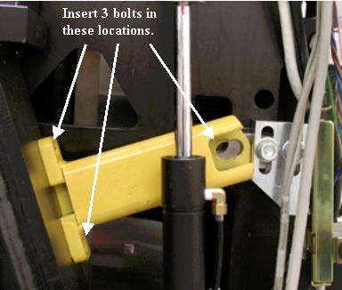 On the Right side of the gantry, remove the two bolts at the base of the locking bracket.