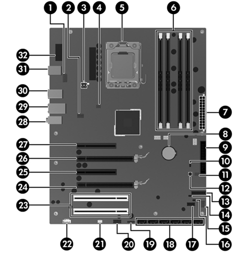Figure 2. HP Z400 Host Computer Motherboard Layout