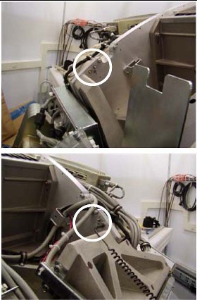 The gantry has defined ESD attachment points that allow easy attachment for banana clip and alligator clip style connections. There are points on the stationary frame on each side of the gantry and rotating assembly behind the DAS plate. The stationary frame locations should always be used if the length of your ESD strap is sufficient.