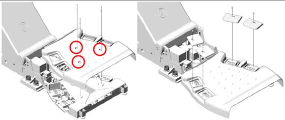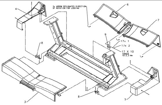 Start with the rear covers (Shown as items 6 and 7). Using an 8 mm hex wrench twist the 3 twist locks counter-clockwise to release the locks and pull each cover out from the back of the gantry.