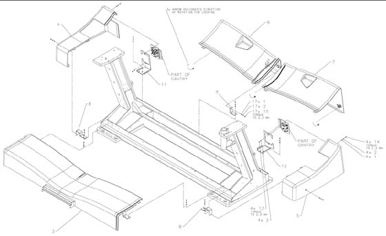 The front and rear covers are held in a fixed vertical position by the cover locking mechanisms at the vertical middle of each cover on each side. The only adjustment capability is found on each of the cover Cantrells. See Figure 8. One is located near each corner of the front and rear cover. Adjustments are best done at zero tilt.