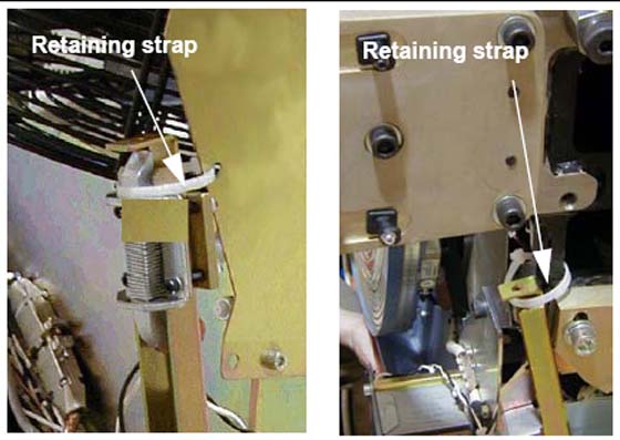 Remove the upper Cantrell brackets from the service position and rotate them into position over their associated retaining pins.