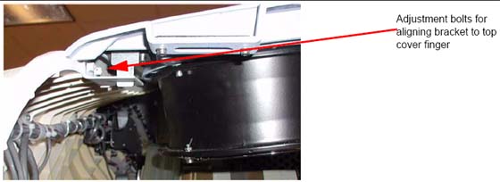 The brackets on the front/rear covers for the fingers on the outer edge of the top covers are adjustable using a 3mm hex wrench and sliding the bracket till it lines up with the top cover finger. (See Figure 10)