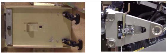 Remove the lower Cantrell brackets from the service position and rotate them into position over their associated retaining pins.