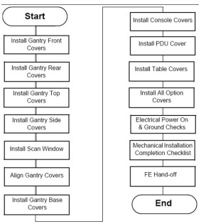 To reinstall the gantry base covers, reverse the above steps, putting on the covers in the order of front, sides then rear covers