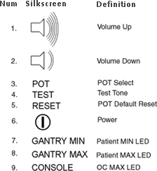 This is the maximum volume that the patient will here in the room from the operator or from Auto Voice. Select this POT to control the volume to a level that is the loudest/highest volume the patient can receive.