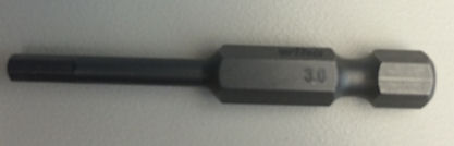 HEX BIT 3.0MM with 0.25 inch HEX Shank, 1.9 inch length (shown below).