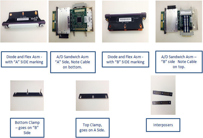 Position the A/D sandwich with the ribbon cable side down and place it on top of the bottom clamp and interposer.