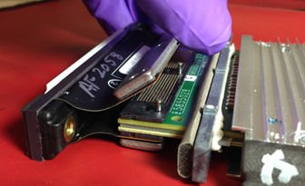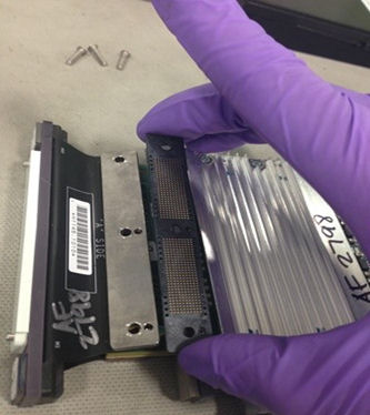 While cleaning the electronics in the following steps, there may be debris from broken interposer contacts. Ensure to collect and remove any debris found.