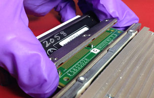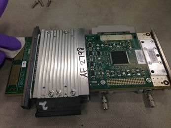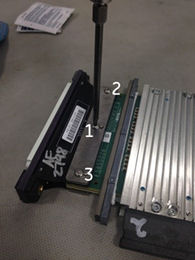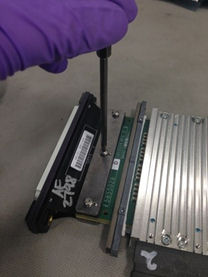 Slowly lift up the top clamp and flex (they may stick together), remove the interposer and discard. Be careful not to bend the flex too far, or damage it during removal. There is only one interposer on the ‘A’ side of outer Saturn modules.