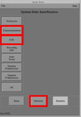 Select RESTORE to restore the system characterization and phantom calibration files to the system.