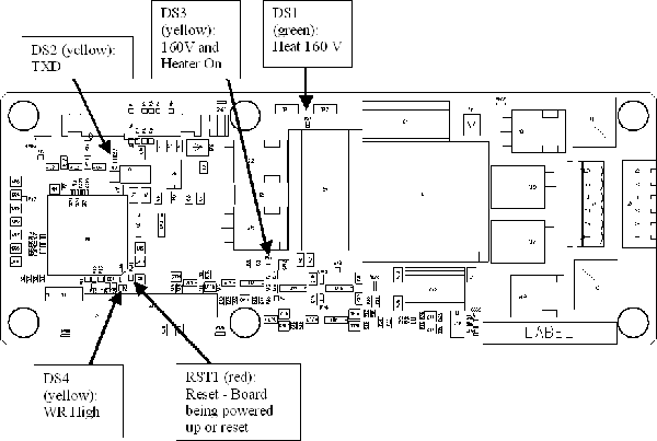 After the power on diagnostics, heater board LEDs DS1 and DS2 are lit successively. Refer to block diagrams for complete explanation of LED indication on this board. Any different status corresponds to an abnormal situation. An error code is logged. Refer to error code description.