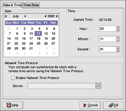 To change the time, use the up and down arrow buttons beside the Hour, Minute, and Second in the Time section. Changes will not take place until you click the OK button.