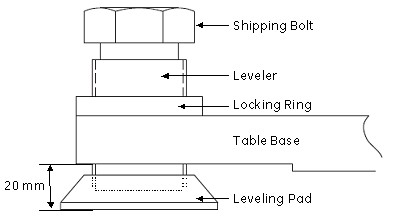 the table until it nearly rests on the leveling pads. Leave the shipping