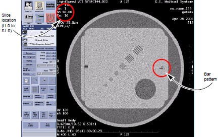 the bar pattern on the right side of the phantom. Record the scan
