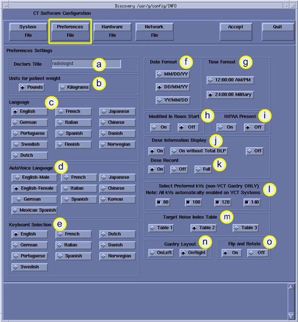 VCT example below:Figure 3. Preferences Setup Screen (VCT Only)