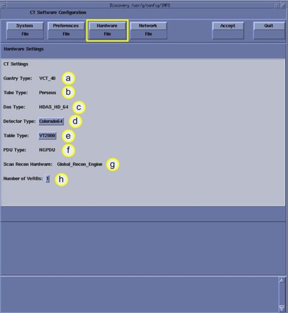note:This screen provides the ability to declare the CT system on a hospital network. Key information such as Host Name, IP Address, Net Mask (for CT systems on a subnet) must be obtained from the hospital network administrator.