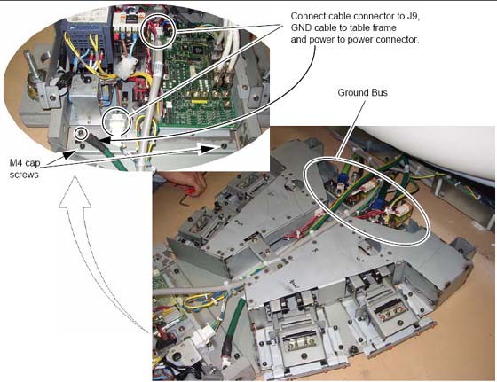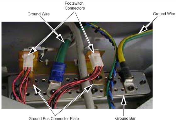 note:You need to add the table ground cable and the footswitch adapter plate to ground bar, as shown.