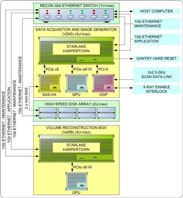 The VeRB2 Computer communicates with the Host Computer through the Console Network Switch (CNS) and is remotely booted through this connection. Once operational the VeRB2 Computer performs reconstruction processes controlled by Host Software Subsystem.