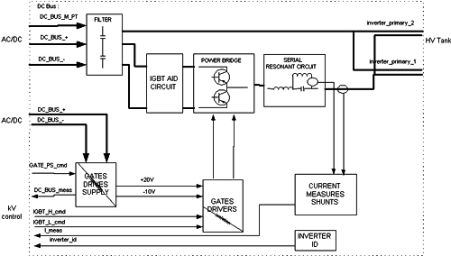The HV power Inverter is a hypo-resonant inverter. LightSpeed 5.x systems use a full bridge type of inverter with 4 IGBTs for switching.