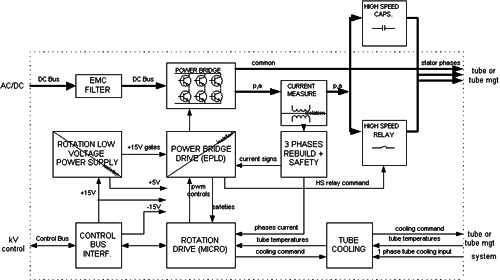HV chain measurements and safeties (kV, mA, mAs, inverter currents, inverter gate supply, DC bus)