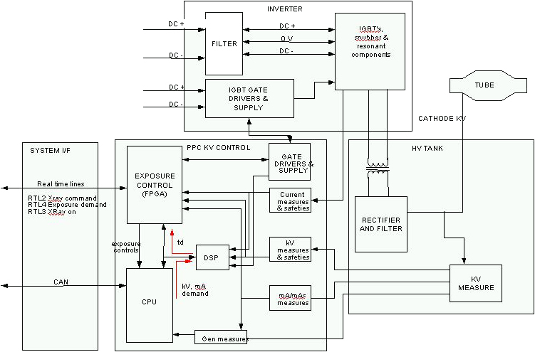 When the CPU receives the kV, mA, exposure time commands from the ORP. When the CPU receives the exposure enable signal it drives the filament drive and starts anode rotation and prepares the generator for exposure. Once all functions are ready, the CPU informs the exposure control firmware that the generator is ready for an exposure.