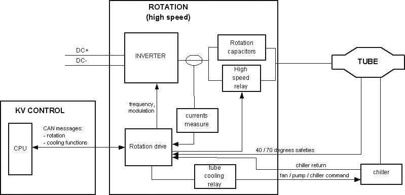 The PPC control board's CPU in conjunction with the Rotation Board controls the X-Ray tube's anode rotation.