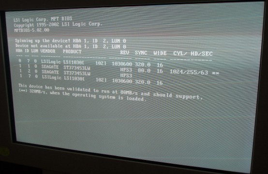 Press Ctrl+C as prompted to check/set LSI SCSI BIOS settings.