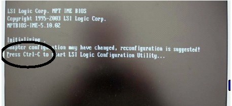 At the Initialization screen, press Ctrl+C to start the LSI Logic Configuration Utility.