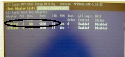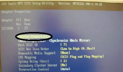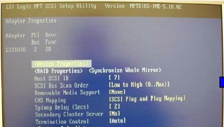 Press Enter to check/set device properties for LSI SCSI Channel 0.