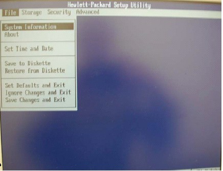 Put BIOS Version 2.10 Floppy into HP xw8200 with 4 Gbytes of Memory. Repower HP Host Computer and select F10 to access the following screens.