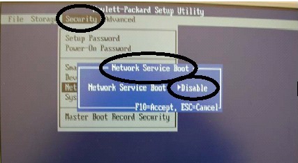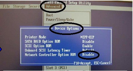Disable Network Controller Option ROM, then press F10 to save settings.