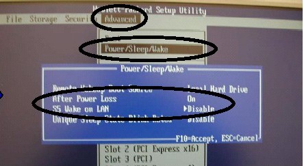 Disable S5 Wake on LAN, then press F10 to save settings.