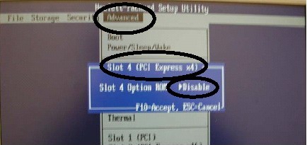 Disable PCI Slot 4 Option ROM, then press F10 to save settings.