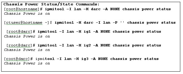 [root@darc ~]# ipmitool -I lan -H ig1 -A NONE chassis power status