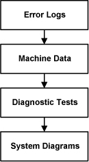 The X-Ray generation subsystem has the capability to give detailed error messages when problems occur. As such, examining the error logs (such as the gesyslog) is the first step in troubleshooting. Comparing real-time data, or machine data, acquired during scanning to normal operating range is the next step. Use the Real-Time Stats viewer for looking at raw machine data. Finally, using the X-Ray generation diagnostic tools can be used as the last resort in troubleshooting for complicated problems. Below is a simple diagram of the troubleshooting process.
