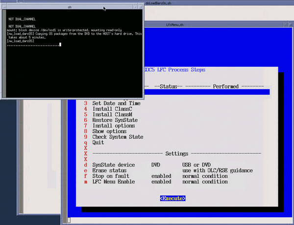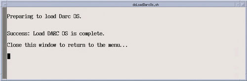 Upon completion of the DARC App software load, close the two execution shell windows to return to the LFC Menu.