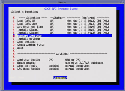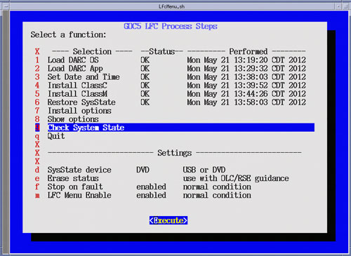 After selecting Execute, a shell window will open and the System State Comparison List will be displayed. Upon completion of the Check System State, close the shell window to return to the LFC Menu.Figure 32. LFC Menu - Check System State Selection